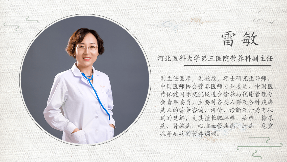 主讲人:雷敏河北医科大学第三医院临床营养科副主任