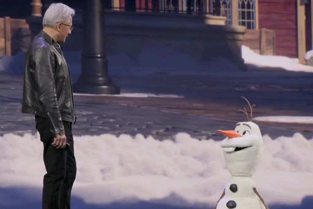 当《冰雪奇缘》里的雪宝摇摇晃晃地走出动画屏幕,用标志性的“一弹一弹”步伐在巴黎迪士尼乐园剧场里与观众互动时,社交媒体瞬间被“萌化”的评论刷屏,甚至有人称“抢了黄仁勋的风头”。