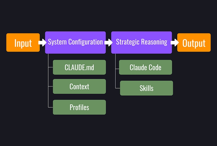 Claude Code 允许我们将最有价值的任务组织成定义明确的项目。这意味着你不用再一遍又一遍地重复同样的指令。以下是 Claude Code 将原始输入转化为有意义输出的高级架构。