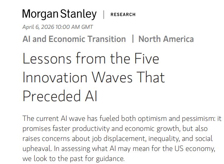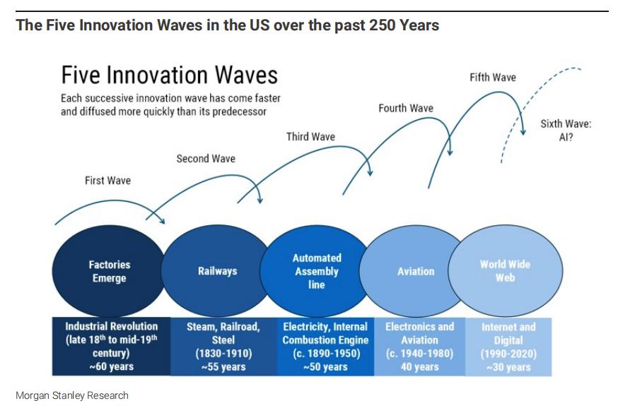 摩根士丹利想确认的是:AI今天到底只是又一轮科技热潮,还是美国历史上的第六次技术革命。