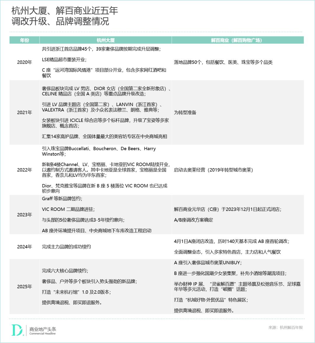 行至2024-2025年,杭州大厦全力投入品牌维护,经过多轮谈判,成功完成六大主力奢侈品牌的续约,并在2025年第二季度成功续约国际顶奢品牌启动重装扩店升级计划。