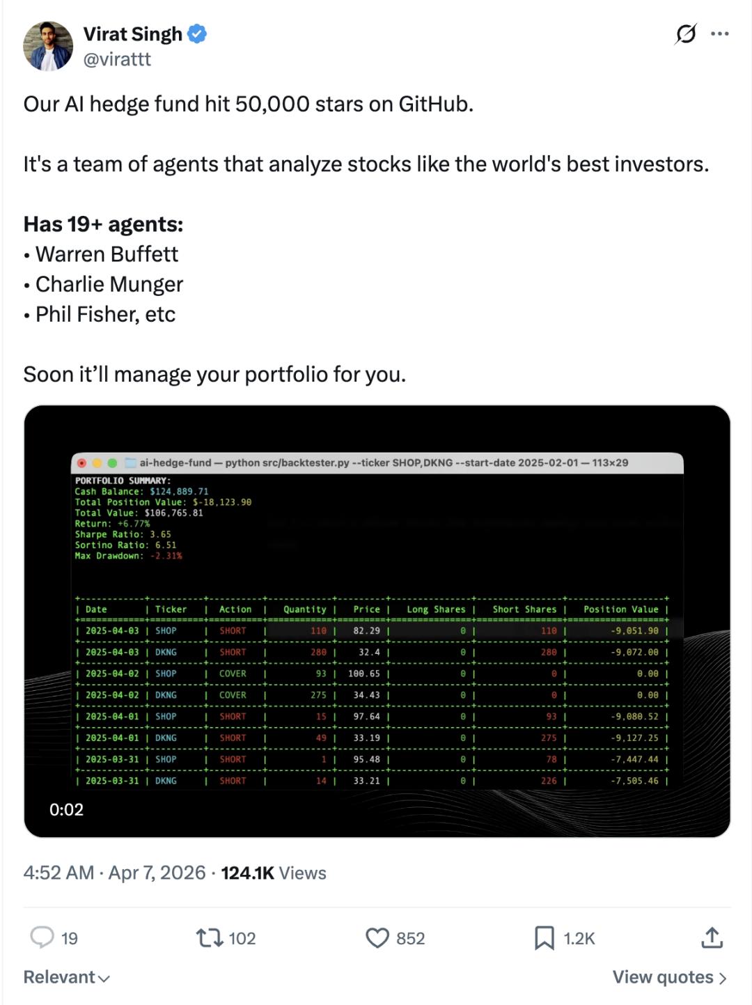 项目主页:https://github.com/virattt/ai-hedge-fund