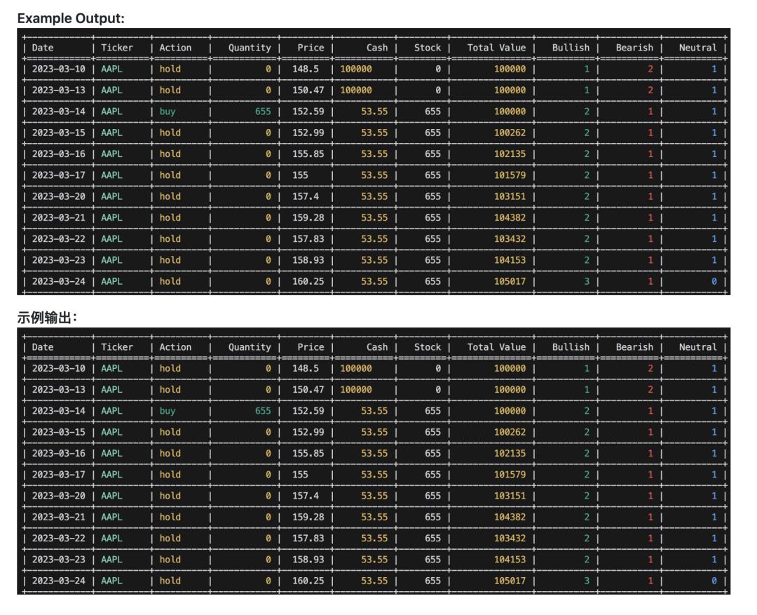 每个投资大师Agent都被注入了对应人物标志性的选股逻辑与风险偏好,在面对同一只股票时,各自给出独立判断,最终由投资组合经理Agent汇总裁决,输出买入、卖出或持有信号。