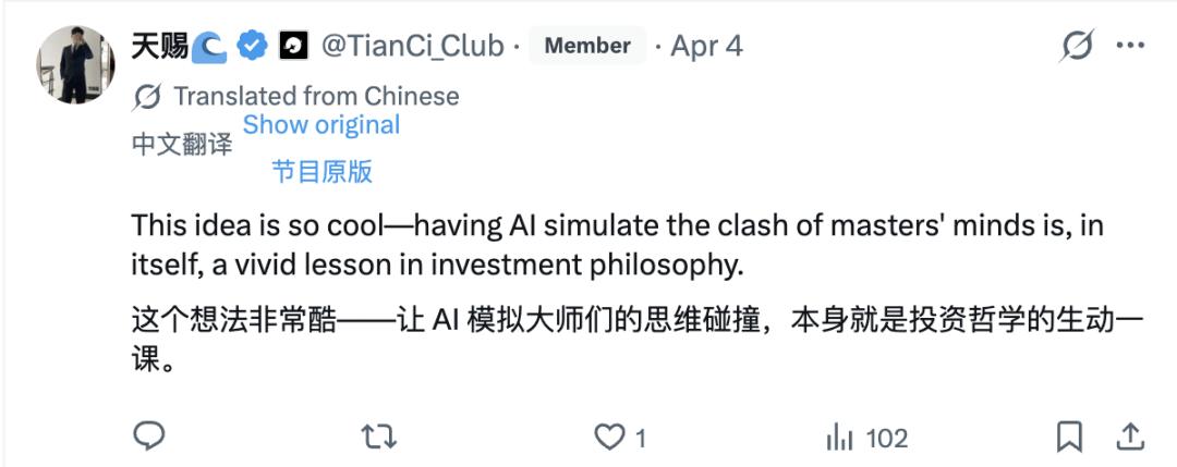 一不小心,查理芒格和巴菲特就被炼化,个个加入投资Agent军团,人人可用了。