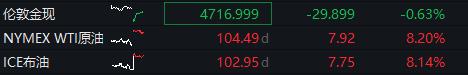受此影响,国际油价13日开盘后显著走高,涨幅超过8%。截至北京时间17时30分,WTI原油价格大涨8.20%至104.49美元/桶;布伦特原油大涨8.14%至102.95美元/桶。