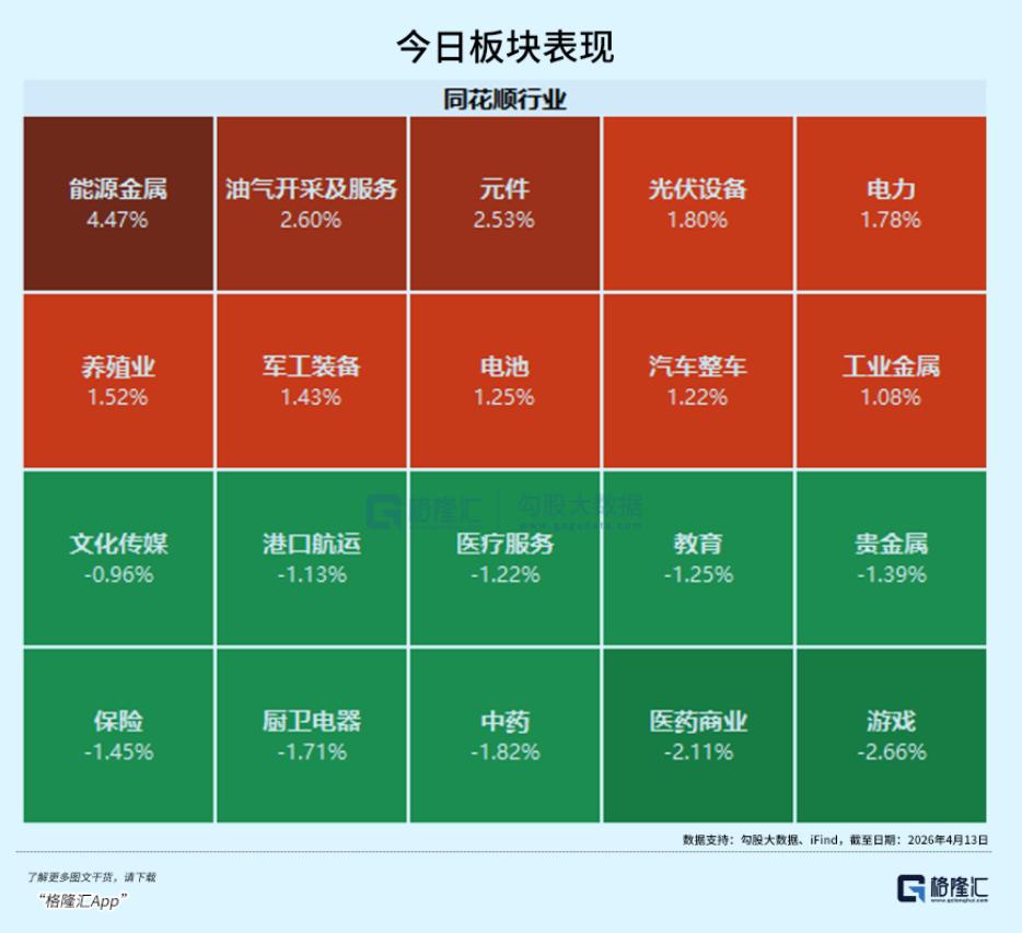 盘面上,猪肉概念股强势反弹,半导体、电池等板块走强,玻璃纤维、能源金属、光伏设备等板块涨幅居前;而海运、保险等板块跌幅居前。