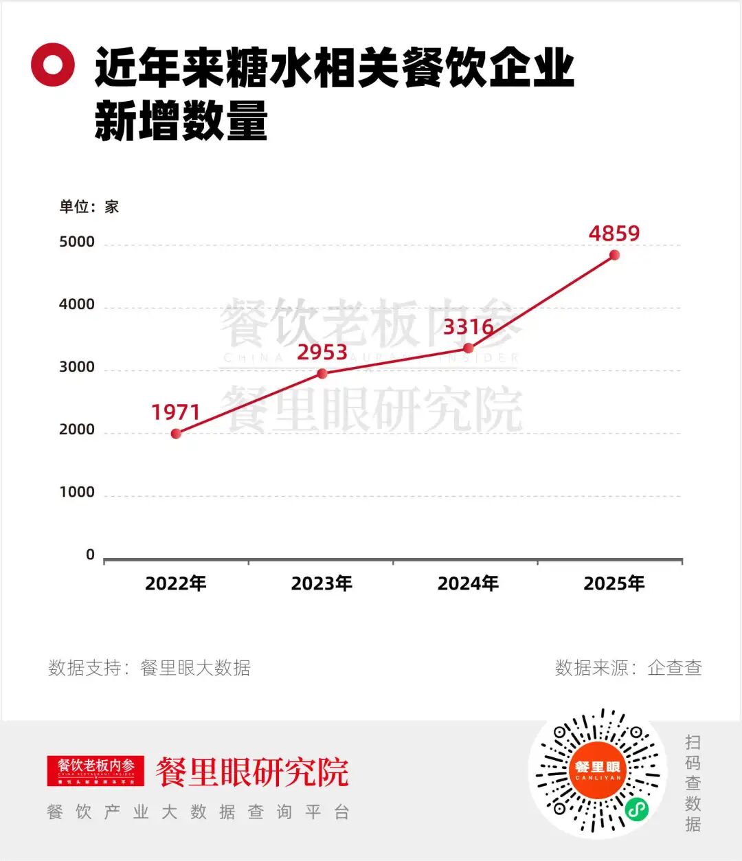 企查查数据显示,截至目前,国内现存糖水相关企业1.57万家。其中,2025年相关企业注册量达4859家,同比增长38.71%,创近十年注册量新高。