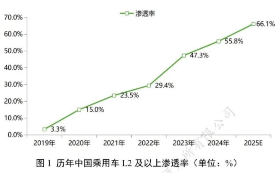 图/历年中国乘用车L2及以上渗透率 来源/互联网 新能源观截图
