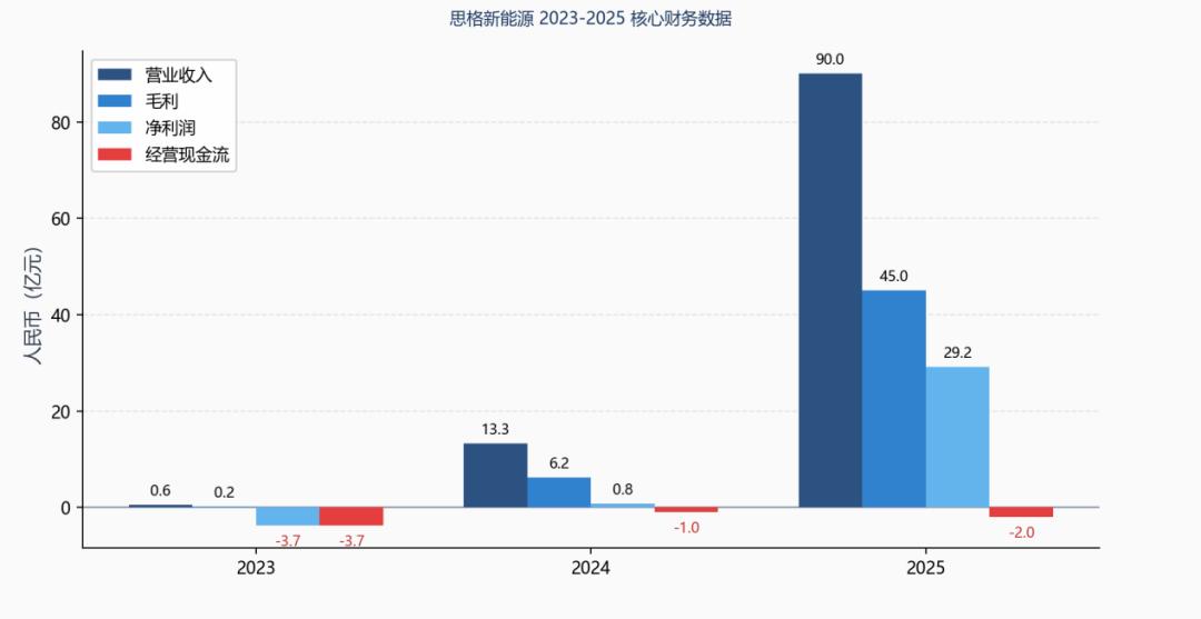 四年是什么概念?大多数硬科技创业公司在这个阶段还在烧B轮的钱打磨下一代产品。思格2025年的营收是90亿人民币,净利润29.2亿,毛利率50.1%。2023年这三个数字则分别是5800万、负3.73亿、31.3%。如果只看增长曲线,这家公司堪称奇迹。