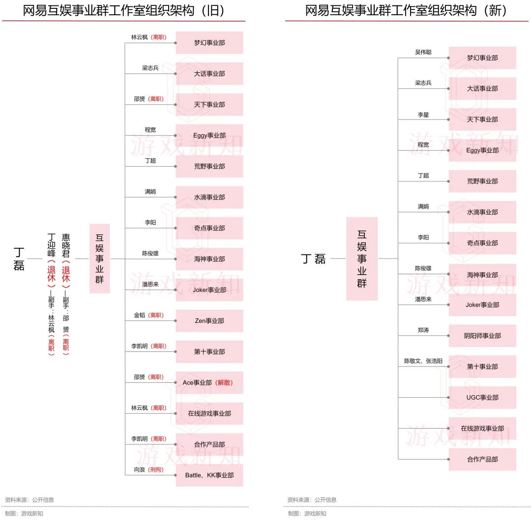 部分同行提到,以前网易的架构是在丁迎峰和惠晓君的带领下,以事业部为大单位进行游戏研发,CEO丁磊是重要决策的最后拍板人。而现在CEO对游戏业务的参与度之高是前所未有的,整体呈现高度权力集中的态势。