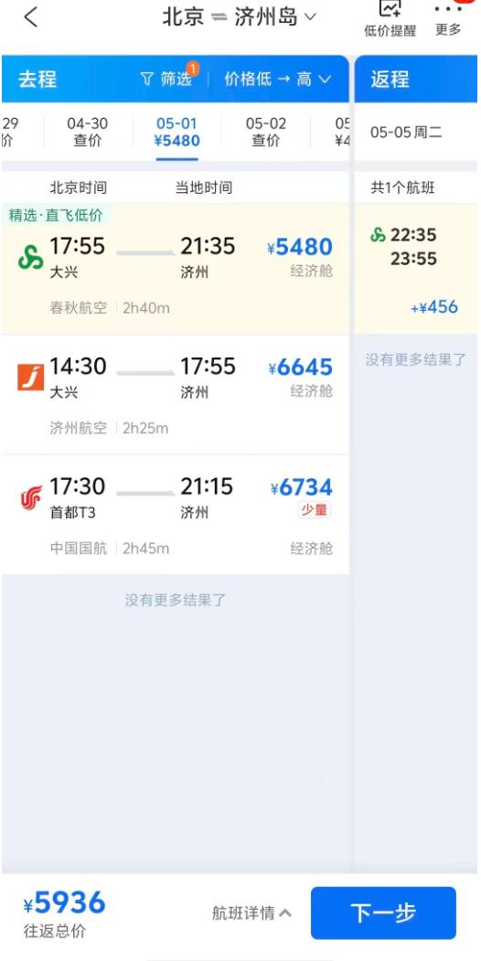 但韩国机票价格已经完全失控,截止昨晚,五一期间北京飞济州岛,1个多小时的航程,春秋航空经济舱已经卖到近6000块。