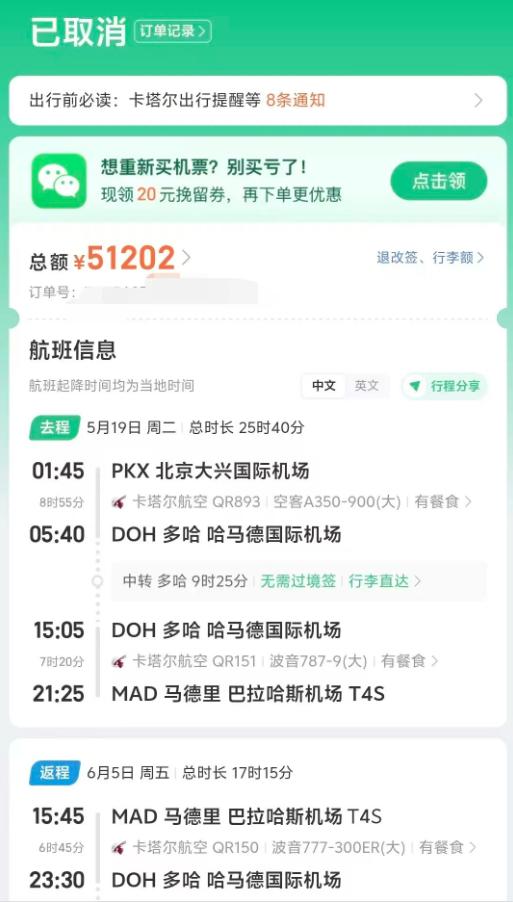 和朋友们聊完,我忽然想到自己也反复权衡后,也在今年3月底退了5月卡塔尔航空飞西班牙的机票。