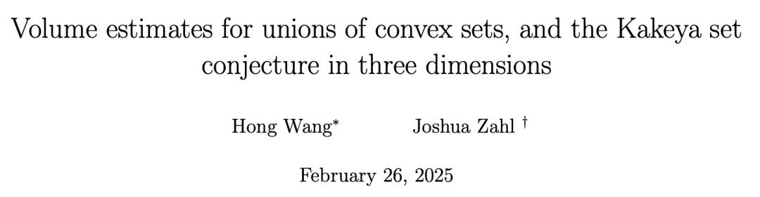 2025年2月,王虹和Joshua Zahl直接放出了终极答案——三维挂谷猜想,证毕。