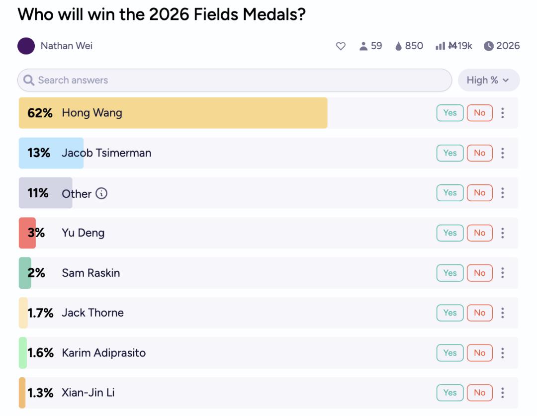 此前,王虹一度登上2026菲尔兹奖得主赔率榜首
