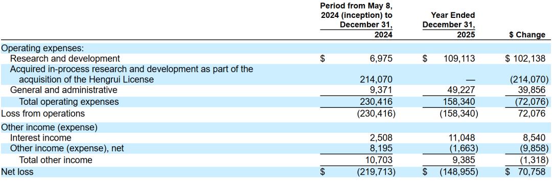 Kailera无收入,2024年净亏损为2.2亿美元,2025年净亏1.49亿美元。