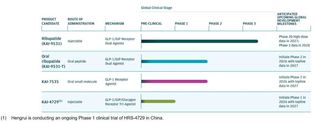 Kailera的旗舰产品是代号为KAI-9531(即恒瑞的瑞普泊肽/HRS9531)的GLP-1/GIP双受体激动剂,正在进行全球III期临床试验,被视为诺和诺德Wegovy与礼来Zepbound的潜在有力竞争者。