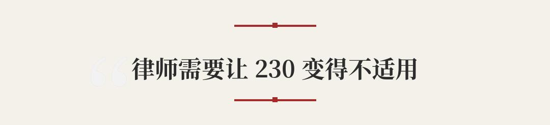 律师需要的是另一条路。不是正面突破 230,而是让 230 变得不适用。