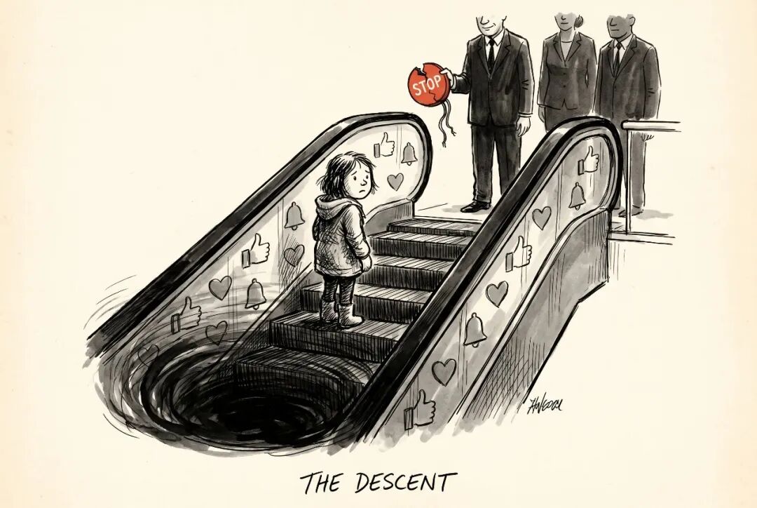 九岁打开了 Instagram,从此每一条通知都像电击一样穿过她的神经。在学校跑去洗手间,看手机,深夜躺在床上刷到凌晨。有一天,看了十六个小时。