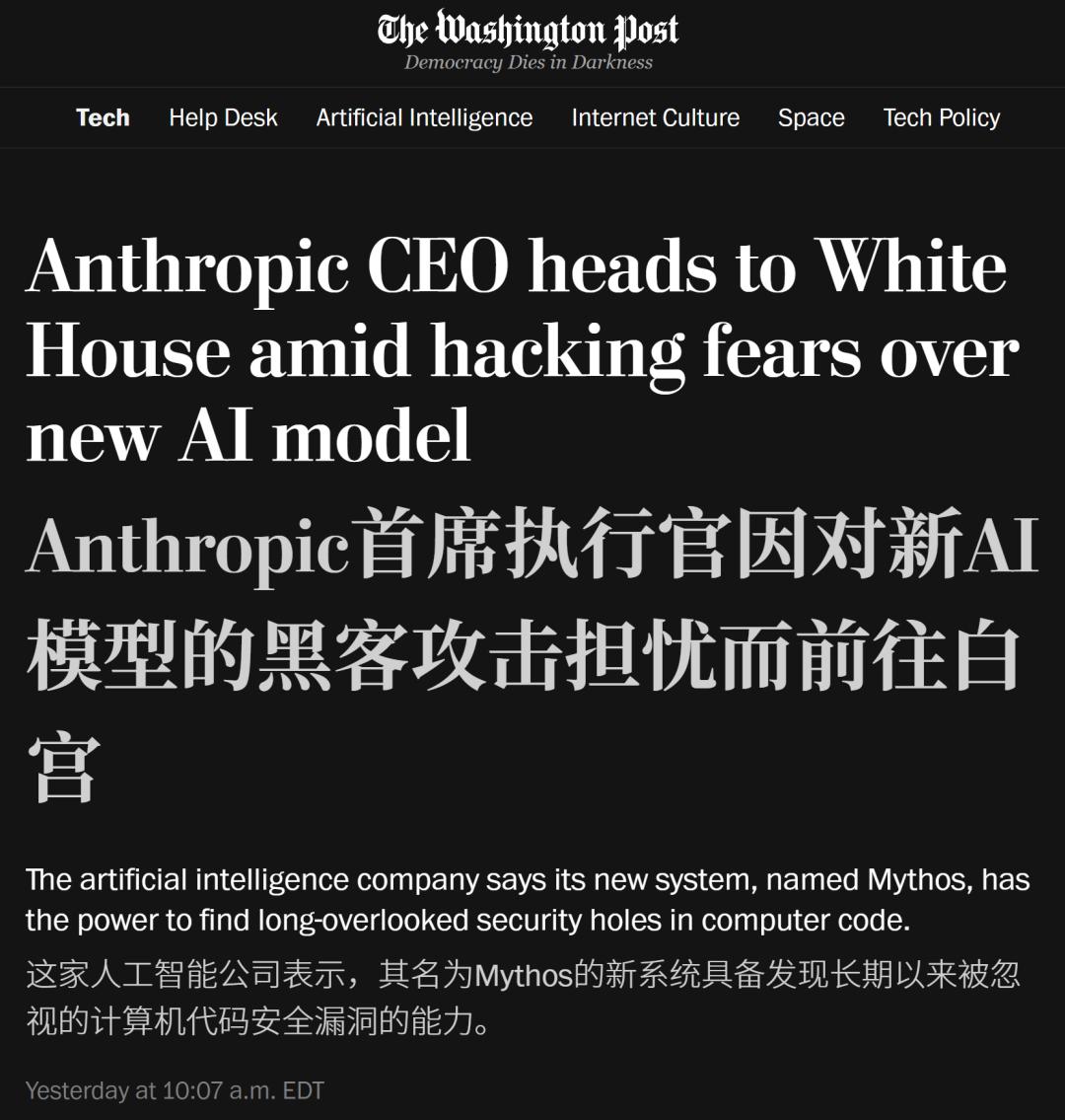 这也是 Mythos 在华盛顿引发一轮密集预警的原因。