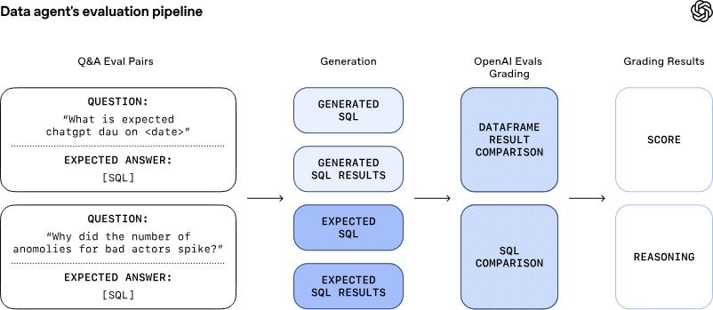 Evals API每个重要问题都配有手动编写的,可作为「黄金标准」查询语句,智能体的表现被持续监控和评分。