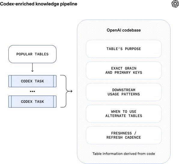 之后的Codex增强通过推导表的代码级定义,让智能体能够更深入地理解数据实际内容。这一层提供了关于值唯一性、表数据更新频率、数据范围等关键信息。这一层的引入,让智能体能够明白不同表在构建,更新上的差异。