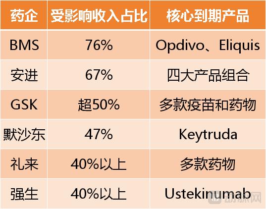 部分受专利悬崖影响的MNC和药物数据来源:公开信息整理