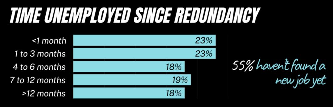 在这些被裁员工中,仍有55%尚未找到新工作;即便成功再就业,也只有27%表示对新岗位感到“有安全感”。
