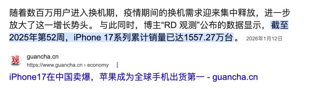 从已有的数据来看,iPhone 17的销量表现总体稳健,尤其是iPhone 17 Pro和Pro Max机型延续了高端市场的强势地位。