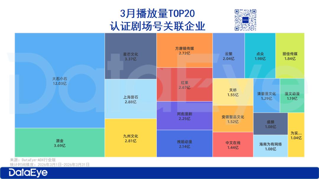 截止3月DataEye研究院可统计的已进行企业认证的剧号共715个,其背后可关联公司达602家。