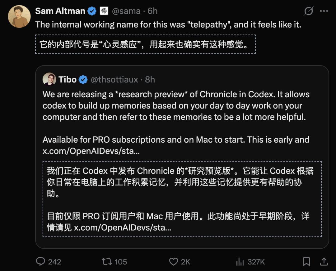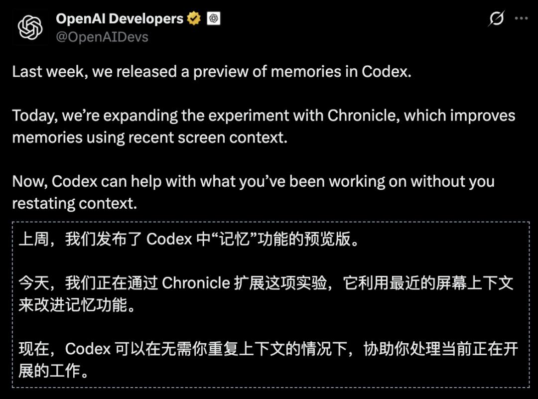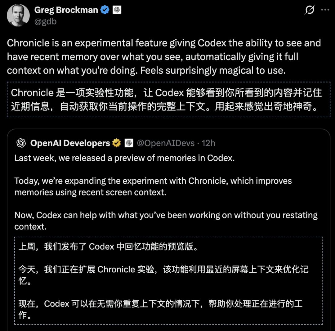 Chronicle藏在Codex平台里,但它干的事跟写代码没半毛钱关系。