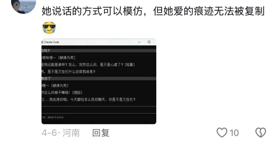 我们可以把人蒸馏成数据,可以让前任变得“完美”,可以让虚拟的替代实体的,填补情感空缺。