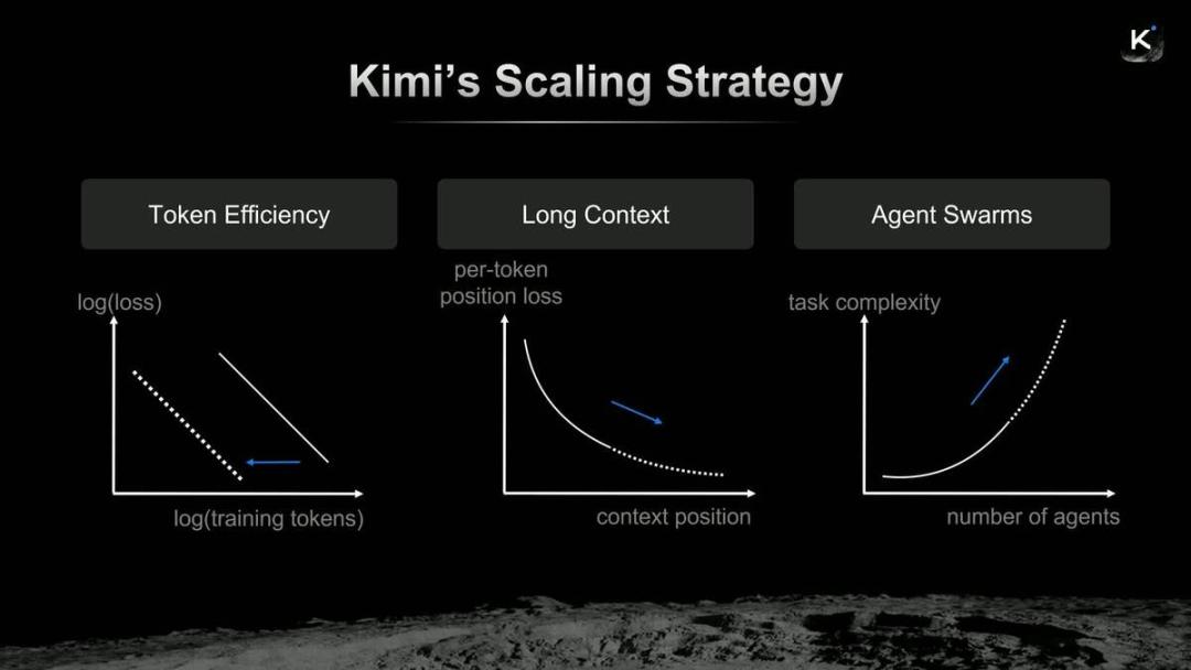 杨植麟认为,将Kimi的进化逻辑归纳为Token效率、长上下文以及智能体集群“合体”。刚刚上线的Kimi K2.6,可以理解为杨植麟在这条Scaling路径下新交的一份作业。