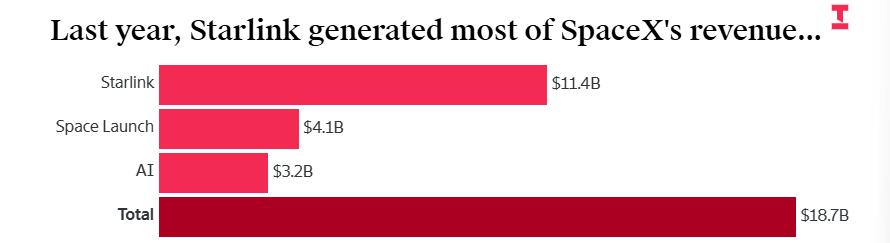 2025年,星链业务收入114亿美元,成为SpaceX的主要收入来源