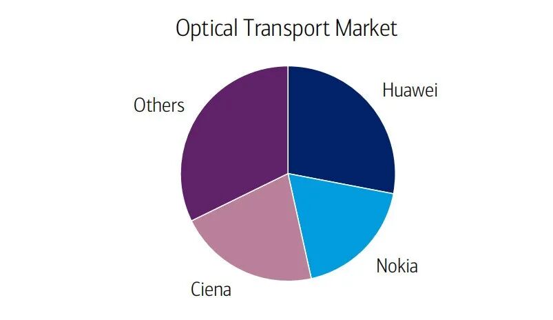 在这条产业链中,诺基亚的光通信设备市场份额排全球第二,还是仅次于“大魔王”华为,第三是在北美市场与诺基亚缠斗的Ciena。