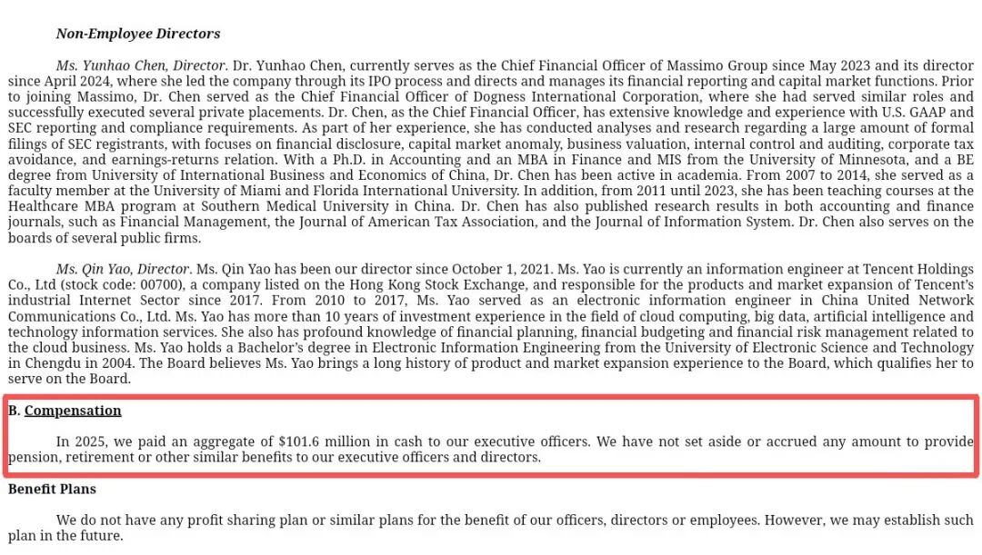 根据财报披露的信息,2025年公司向高管支付了总计1.016亿美元的现金。