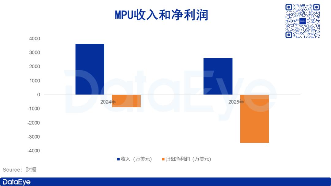 财报数据显示,MPU2025年总营收达2610万美元,同比下滑28%;归属于母公司股东净亏损3429.63万美元,亏损规模较2024年进一步扩大。