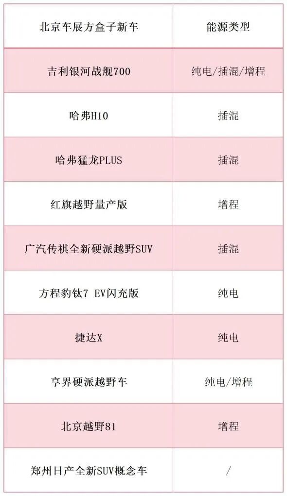 除此之外,吉利银河战舰700、哈弗H10、哈弗猛龙PLUS、方程豹钛7 EV闪充版、北京81等多款重磅车型悉数登场,从经济型到高端市场、从家用轻越野到专业硬派越野实现全覆盖,进一步将方盒子赛道的竞争推向白热化。