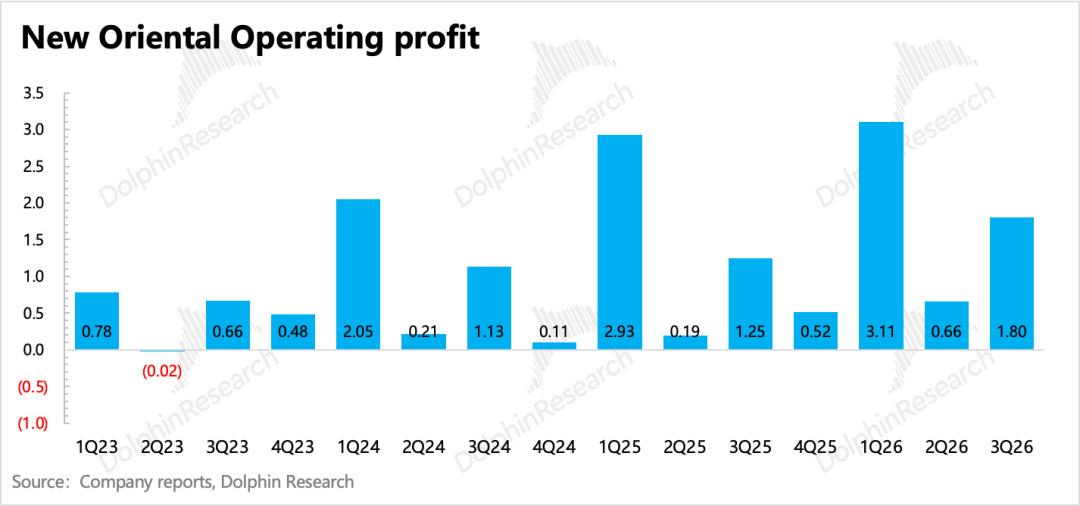 新东方北京时间4月22日美股盘前发布了2026财年第三季度的业绩,对应的是自然年下2025年12月至2026年2月的部分秋季学期+寒假期间的经营情况。