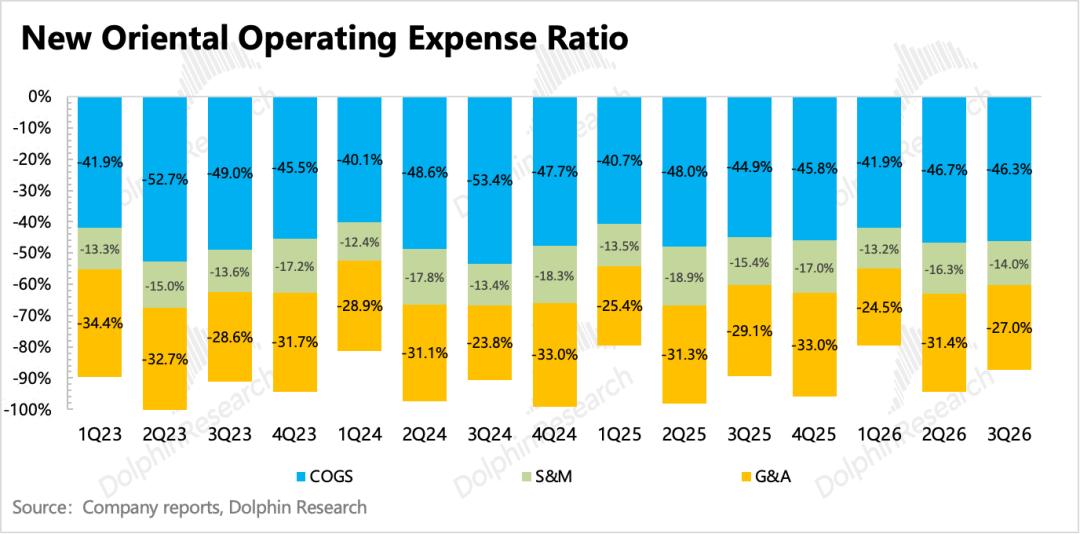 5、业务整合提升效率:本季度仍处于4Q25FY开启的降本增效周期,以及近期关于留学业务的整合(考培和咨询团队合并)也在推动公司整体盈利能力的提升。这主要体现在管理费用的优化,费率同比降低2pct,带动最终经营利润也同比优化2pct。
