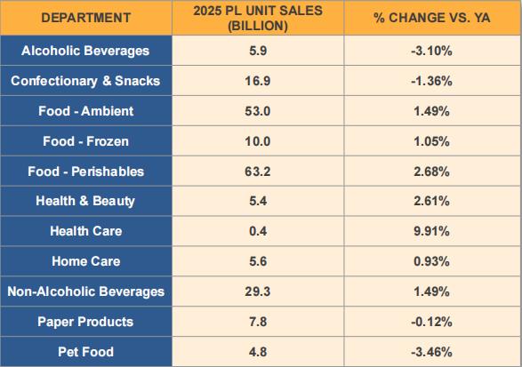 2025 PL Unit Sales by Department(2025年各品类自有品牌单位销量)