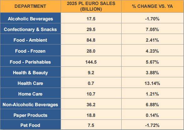 2025 PL Euro Sales by Department(2025年各品类自有品牌欧元销售额)