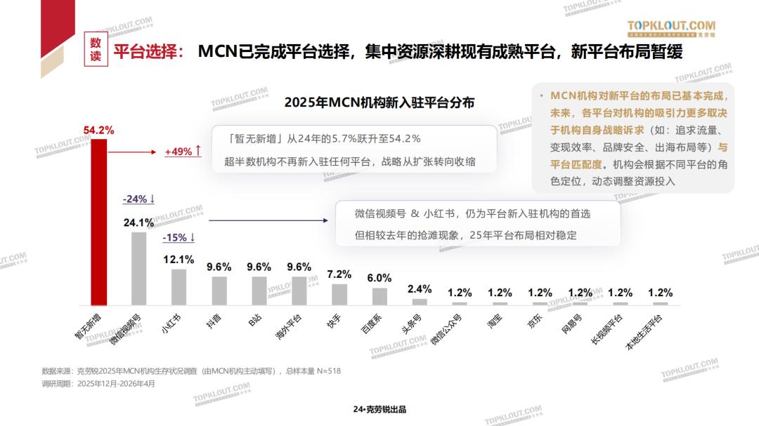 54.2%:超半数机构在2025年没有新入驻任何平台。而在一年前,这个数字仅为5.7%。从“到处占坑”到“精耕现有阵地”,行业的战略逻辑完成了180度转向。