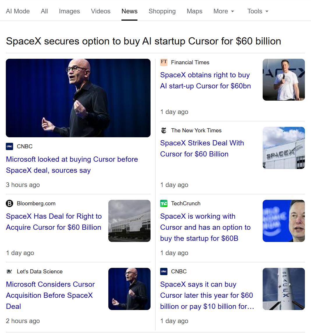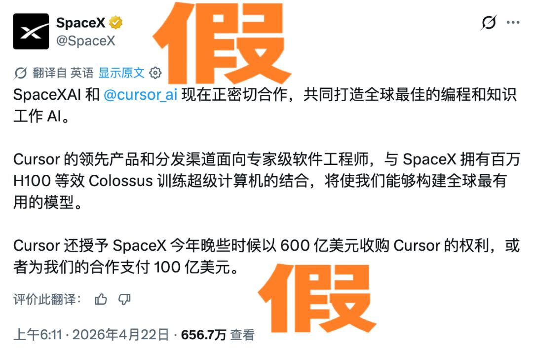 对了,上面社长说谎了,其实 SpaceX 宣布与 Cursor 合作的那一张,是真的。