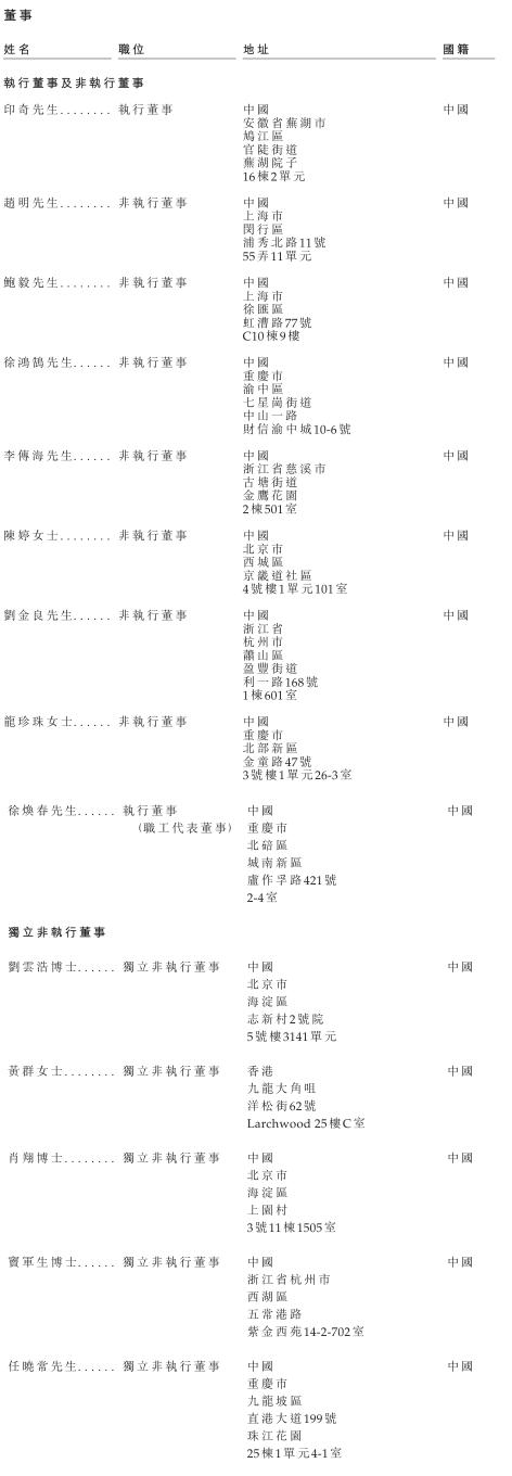 赵明,53岁,为联席董事长兼非执行董事。赵明于2026年3月获委任为联席董事长兼非执行董事,赵明于1998年3月加入华为技术有限公司担任研发项目经理,于2015年3月前历任CMDMA与Wimax及TD-SCDMA产品线总裁、全球无线解决方案销售部部长、意大利代表处代表及西欧地区部副总裁等职位。