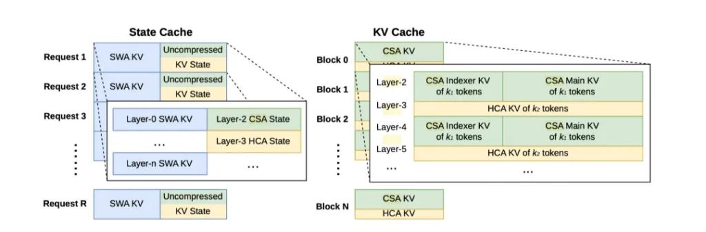 CSA将每4个token压缩为一个信息块并通过稀疏检索获取最相关内容,在保留中段细节的同时大幅降低计算量;HCA则将海量信息浓缩为框架级信息块,专注全局逻辑处理。