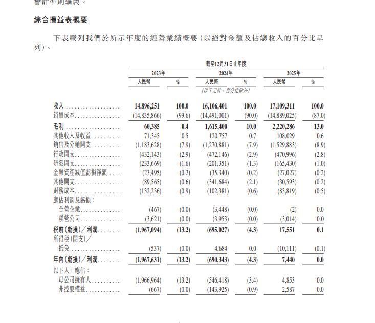 从招股书中的情况来看,T3出行的销售成本从2023年-2025年的变化不大,分别为148.36亿元、144.91亿元和148.89亿元,在收入中的占比也在逐年减少,分别为99.6%、90%和87%。