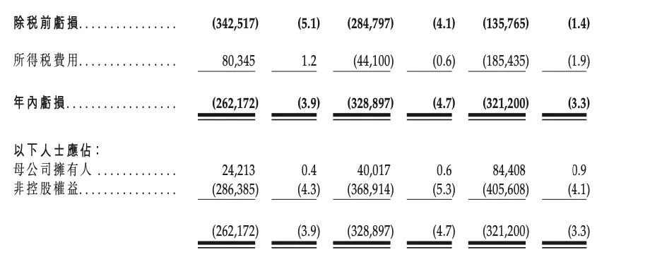 此外,撇除应占合营企业及联营企业利润, 于往绩记录期间的亏损净额分别为6.759亿元、8.171亿元及7.639亿元。