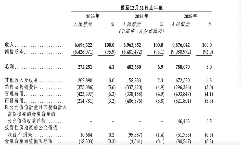 于往绩记录期间,千里科技的收入由2023年的66.98亿元增加至2024年的69.64亿元,并进一步增加至2025年的98.76亿元,主要由于来自汽车及摩托车销售的收入增加。