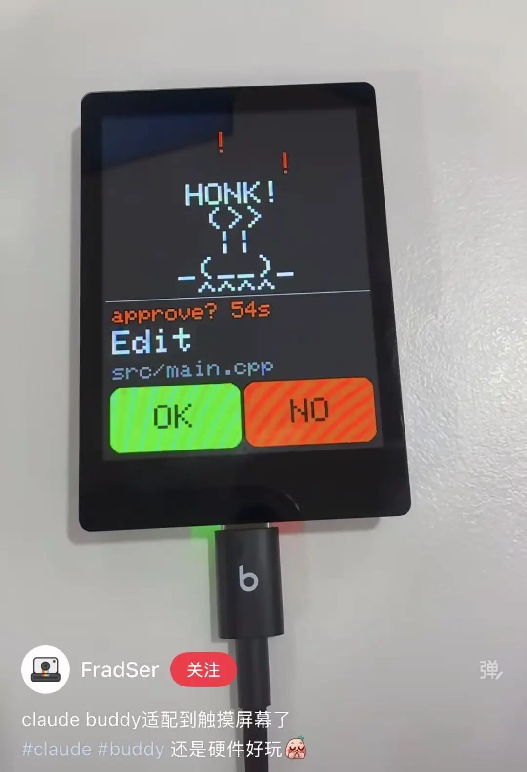 在源码基础上加了一个页面,按键触发Typeless语音输入,长按发送,相当于把这块板变成了一个语音控制Claude的实体入口。