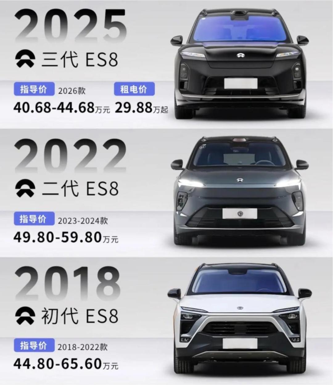 图/蔚来ES8初代-三代售价 来源/互联网 新能源观截图